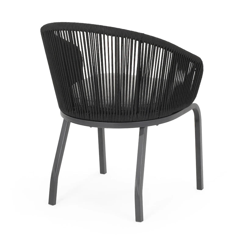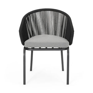 Candy Outdoor Dining Chair Set of 2, Gray Fabric, Black Metal, Woven Rope