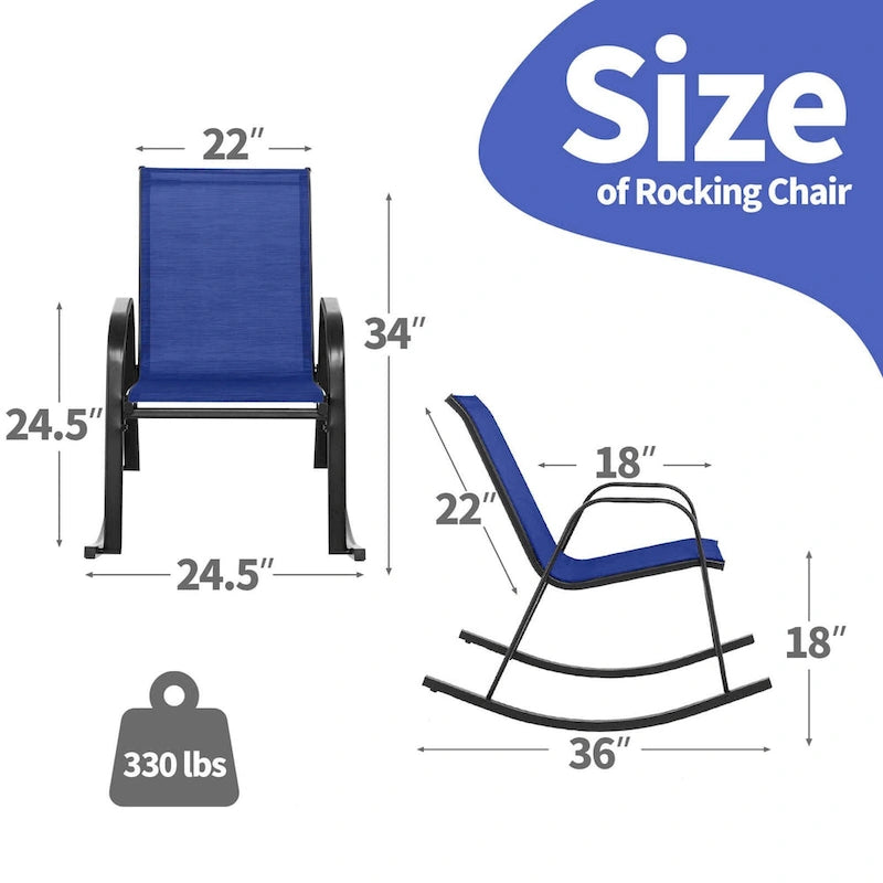 Each chair is ergonomically designed with curved armrests and backrest, making you feel comfortable to sit. And the sturdy rocking base with bottom stopper ensures gentle and safe rocking. Furthermore, the rocking chairs are quite sturdy with super solid metal frame. And the firm screw connection highly improves the overall stability. The seat and back are made of fabric which is also breathable and easy to dry. If you are looking for cozy chairs for outdoor relaxing, these 2 rocking chairs will be perfect for you.