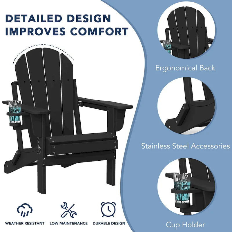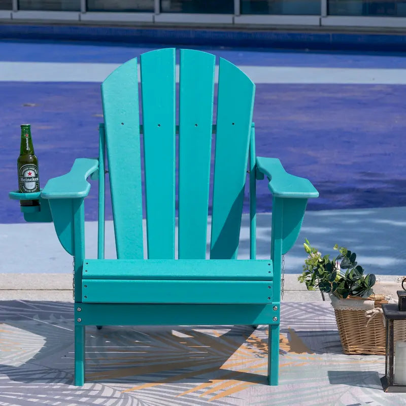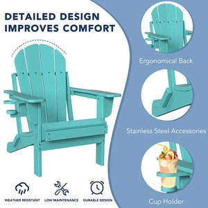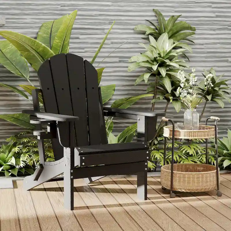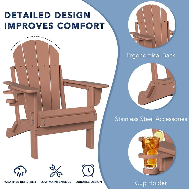 Outdoor Folding Adirondack Chair Patio Chair with Cup Holder